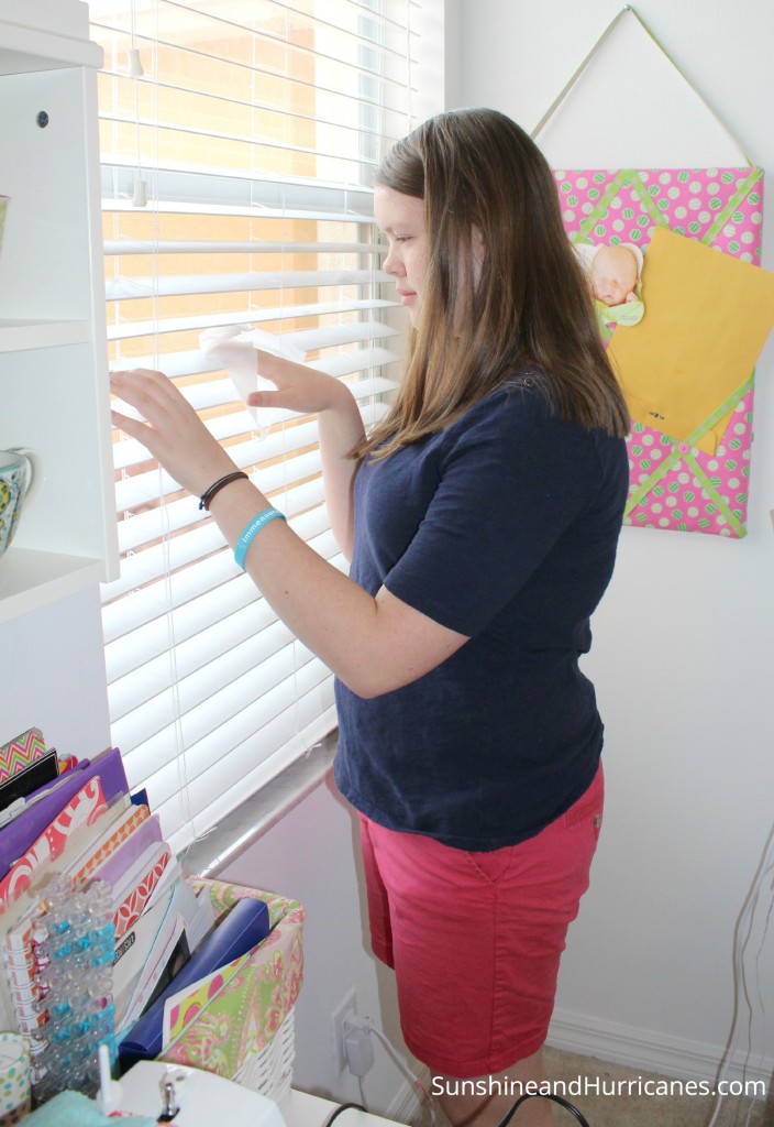 Third, we thoroughly dusted all the shelves, window treatments, reorganized her shelves, and wiped the baseboards.